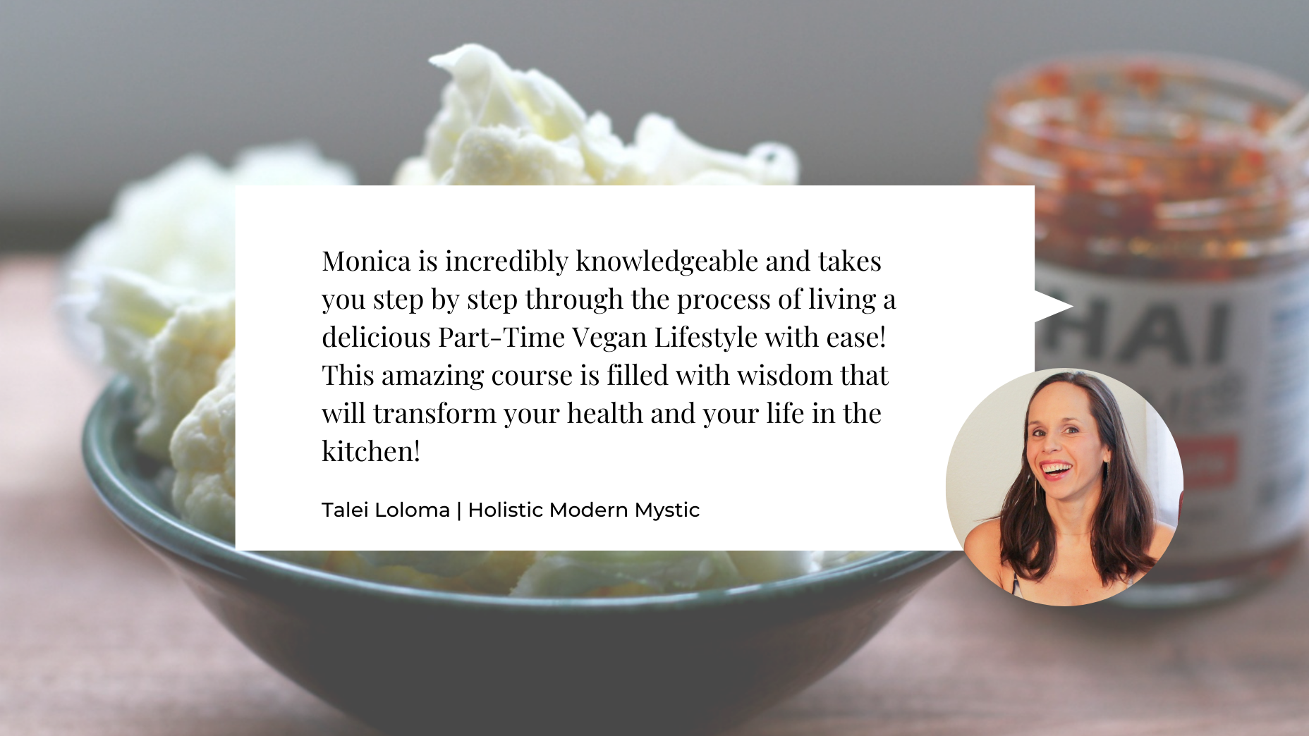Part-Time Vegan is an online course that teaches people how to eat more veggies and healthy plant foods so they can improve their health and feel better.